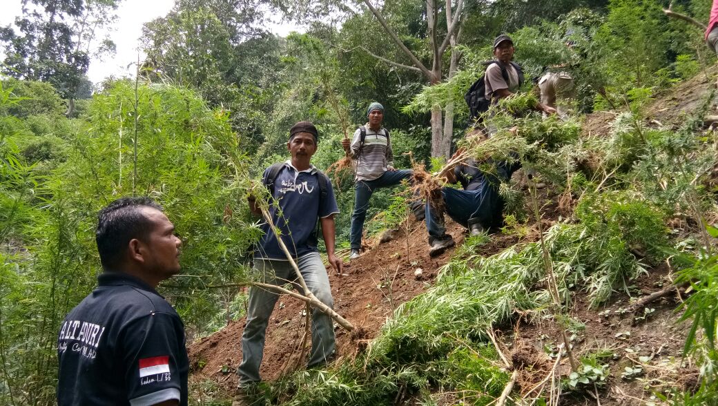 Batang batang ganja yang sudah masuk usia panen itu dicabuti para personil dan warga yang turut untuk dimusnahkan dengan cara dibakar di tempat. Hal itu dilakukan, sebab keterbatasan personil dan medan yang rumit untuk membawanya turun ke Markas.