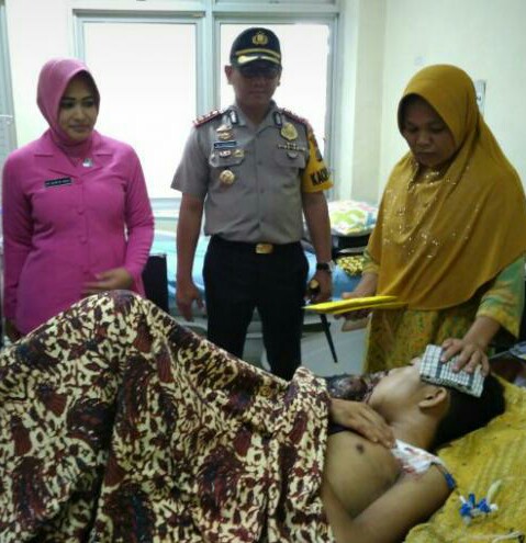 Kapolres Tapanuli Selatan (Tapsel), AKBP M Iqbal Harahap beserta Ibu Ketua Bayangkari Cabang Tapsel, Dian M Iqbal, Minggu (25/2) siang menjenguk Fahrin.