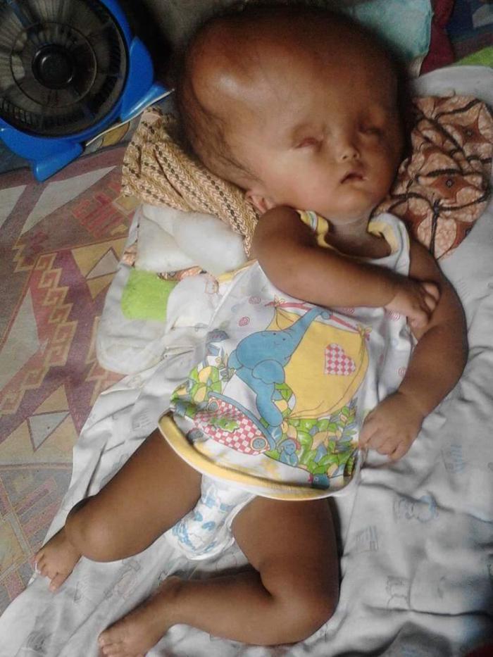 Indah yang merupakan anak pasangan suami istri Sartika (18) dan Putra (20) menderita Hydrocepalus.