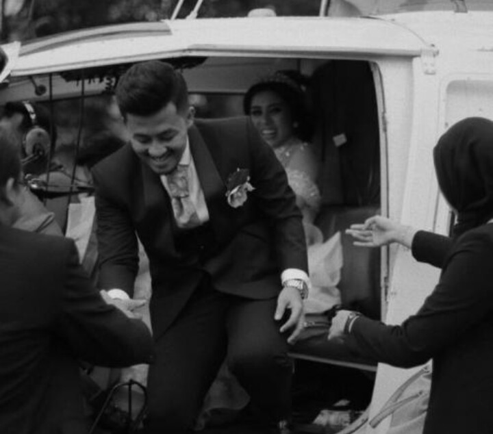 Sesaat setelah turun dari helikopter, pasangan pengantin itu lalu berjalan di atas karpet merah yang sudah disediakan. Pasangan itu kemudian disebut-sebut diarak ke gedung Green Camp Adventure Outbound Siantar, tempat resepsi berlangsung, dengan menggunakan BSA, becak motor khas Siantar.