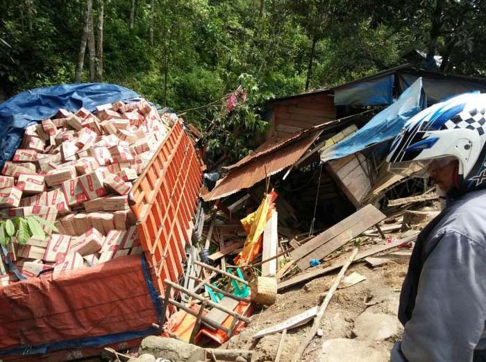 Truk pun menghantam rumah yang dihuni Derliana br Siregar