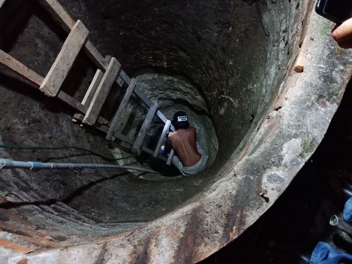 Evakuasi pengangkatan mayat korban bunuh diri yang lompat ke dalam sumur.