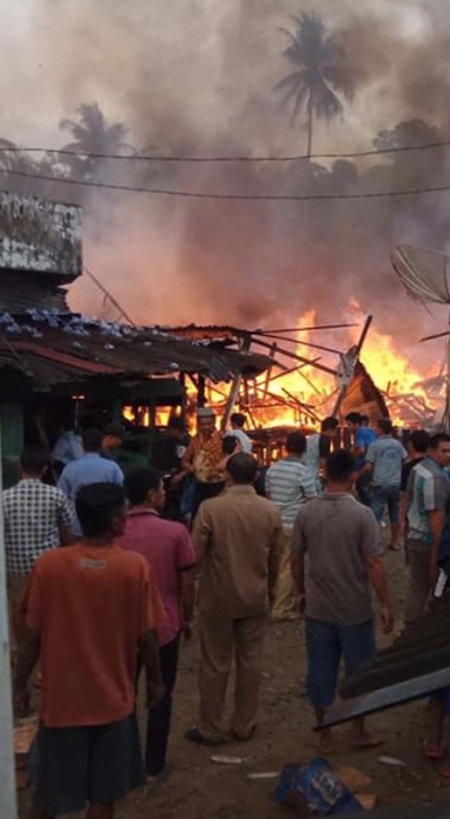 Kapolsek Lingga Bayu, Kompol M Nuriaman menjelaskan, kebakaran menghanguskan 11 unit rumah satu di antaranya adalah Bagas Godang Simpang Gambir.