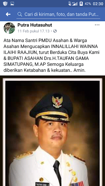 Putra menyebutkan turut berduka cita atas meninggalnya Bupati Asahan.