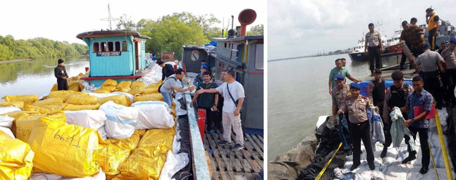 Namun sesampainya di lokasi, nahkoda dan Anak Buah Kapal (ABK) kedua kapal tersebut, serta para supir truk colt disesel sudah meninggalkan lokasi dan kabur ke arah hutan mangrove.