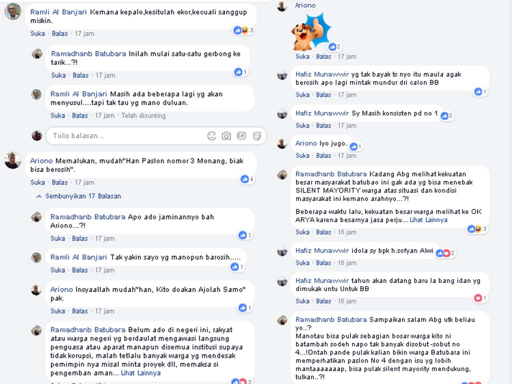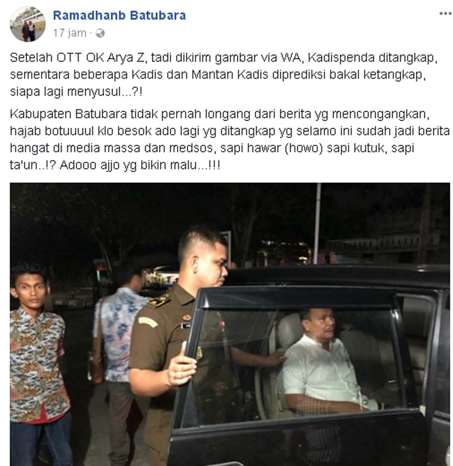 Komentar warga di facebook atas penangkapan Kadispenda Batubara.