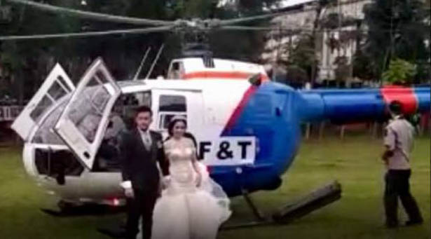 Pasangan pengantin di Siantar yang menggunakan helikopter |