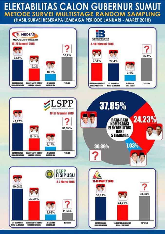 Sebelumnya dirincikan, lima lembaga melakukan survey terhadap pasangan calon yang akan bertarung pada Pilgubsu 2018.