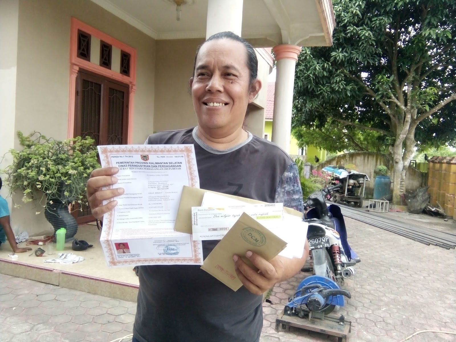 Dokumen berharga yang dimaksud, kata dia berupa selembar surat keterangan tanah dari Badan Pertanahan Nasional (BPN) atas nama Ismail Hidayat yang berdomisili di Banjarmasinm Kalimantan Selatan. Kemudian surat izin usaha perdagangan (SIUP) dan selembar cek bank senilai Rp2,7 miliar.