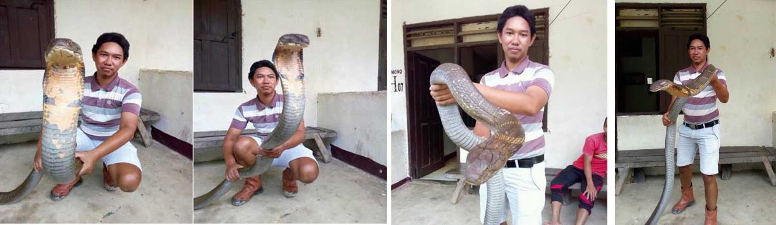 | Foto Made Dwi Sudarmawan dengan King Cobra yang sangat besar. |