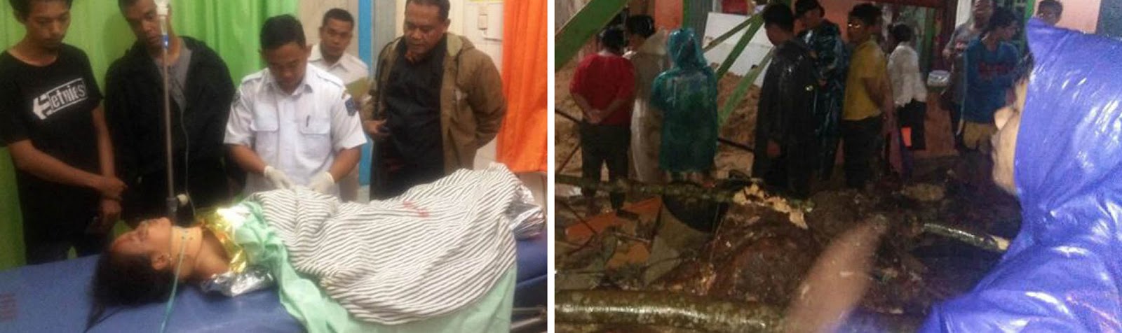 dinding rumah mereka diterjang longsor. Korban tertimpa dinding dan material