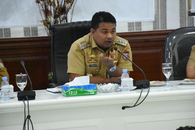 Walikota Tanjungbalai M Syahrial saat memimpin rapat rapat evaluasi dengan OPD terkait di aula II kantor walikota.