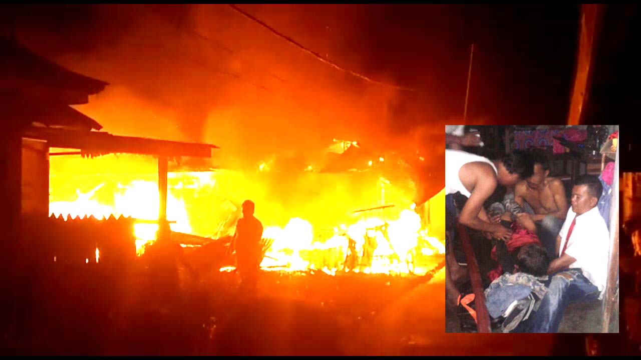| Api yang membakar 4 rumah di Asahan, (insert) Petugas menyelamatkan Rosa dan ibunya yang sembunyi di dalam WC. |