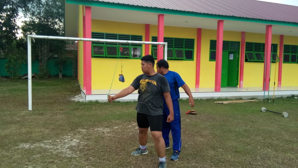 Atlet lempar lembing sedang latihan kekuatan tangan dalam persiapan Porwilsu.