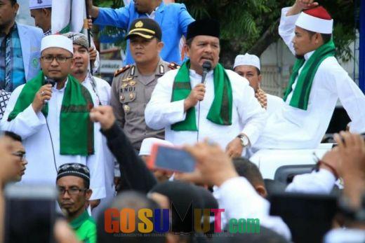 Bupati Labuhanbatu bersama umat islam saat aksi bela islam di Simp 6 Kota Rantauprapat. |