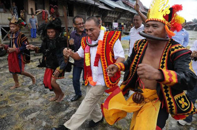 Edy Rahmayadi menari bersama masyarakat Nias. |