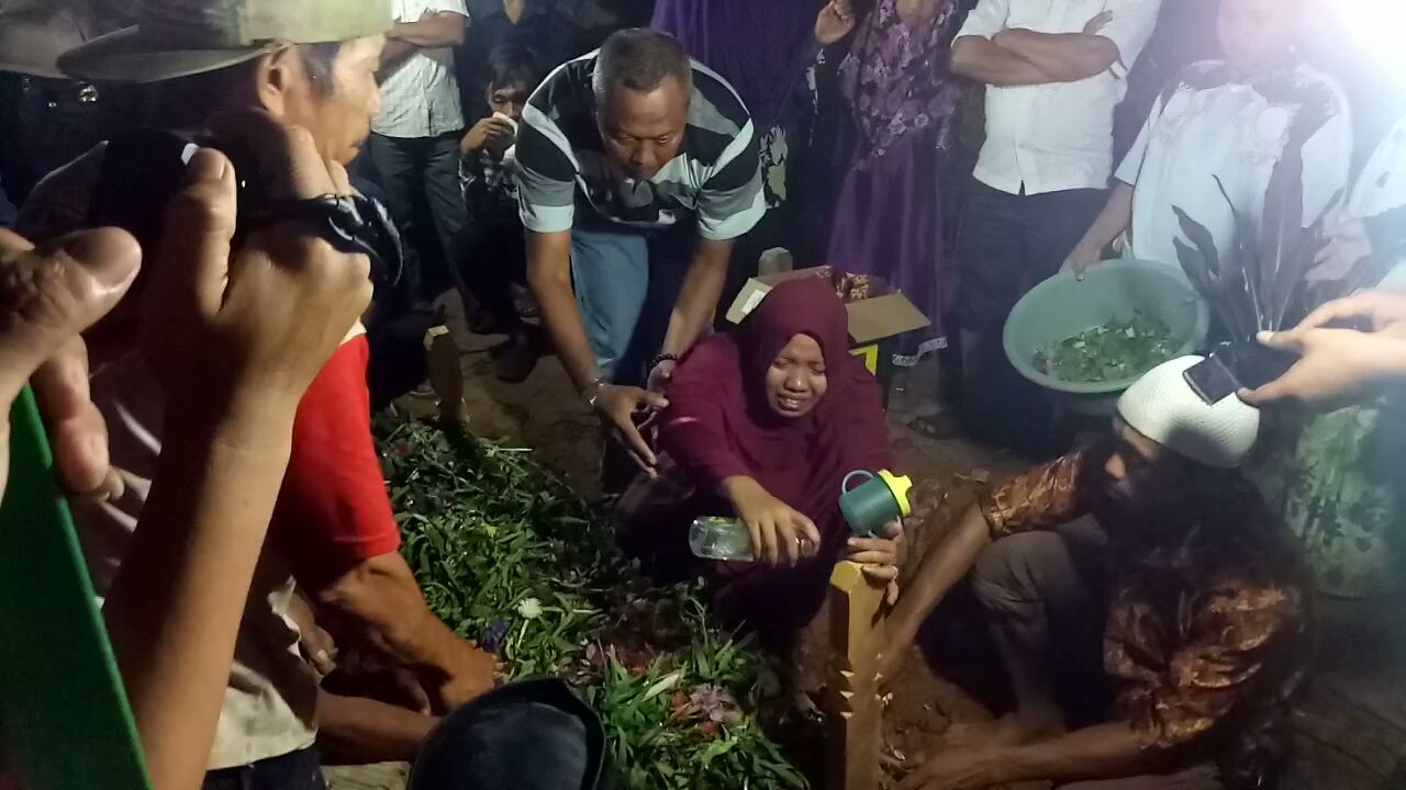 mencium dan memeluk jenazah Jumingan. Ibu korban, Sri Wulan, tampak tenang dan