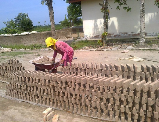membuat batu bata mentah sebanyak 3.000 batu. Menurutnya proses pembutan batu