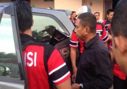 | Ucok Kodok ketua OKP di Kota Padangsidimpuan saat diboyong polisi. |