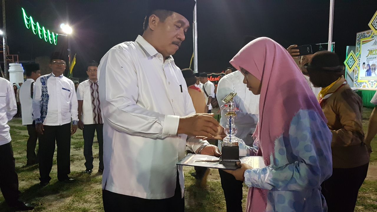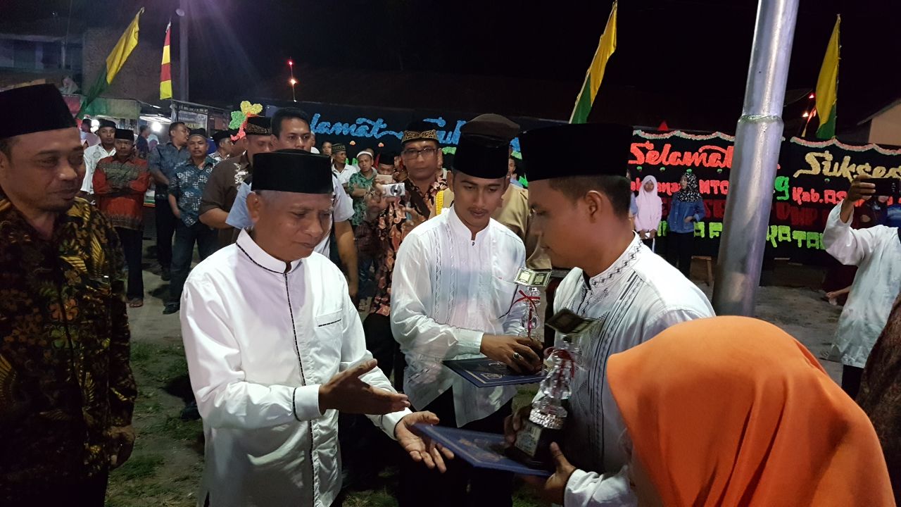Plt Sekdakab Asahan Taufik Zainal Abidin menyerahkan hadiah krpada pemenang lomba MTQ ke-49 Asahan.