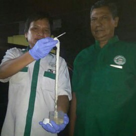 “Saya lupa siapa warga kami kemarin yang mengeluarkan cacing pita sepanjang 10,5 meter itu,” tutur Saridin.