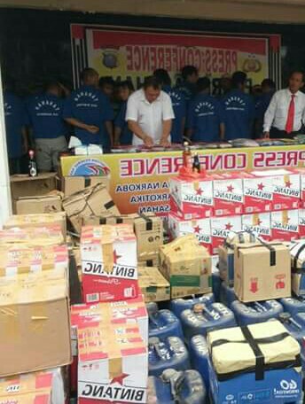 Jumlah total miras dalam kemasan botol yang diamanan sebanyak 1.376 botol dari berbagai merk dan jenis minuman keras, sementara untuk minuman keras jenis tuak sebanyak 70 jerigen dan 1 drum besar.