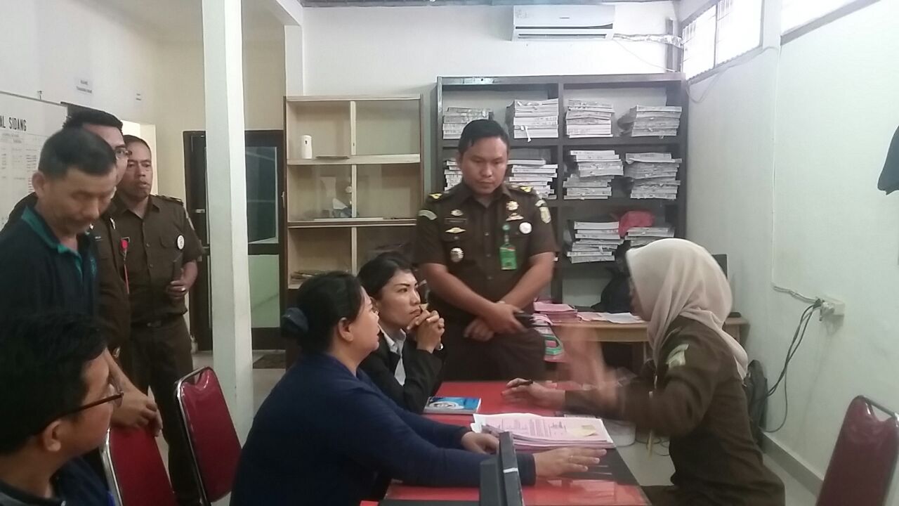 1. Kasi Intel Kejari TBA, Hardiansyah  mengawal proses penahanan tersangka penistaan agama, Meliana (enam kiri/duduk).