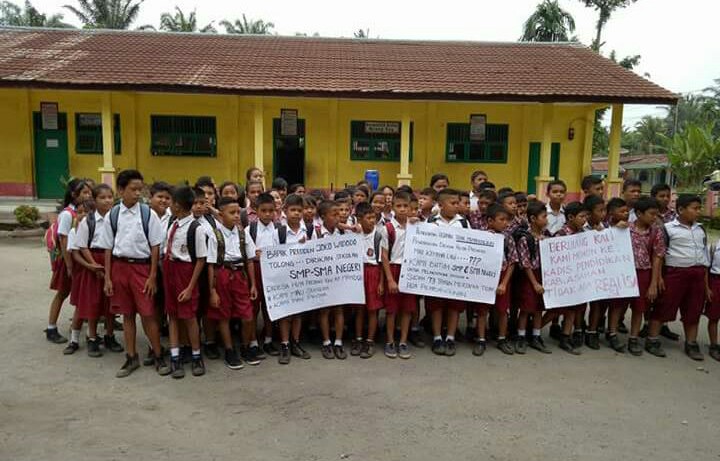 Murid SD di Asahan yang meminta kepada Presiden Jokowi untuk membangun sekolah negeri di desa mereka. |