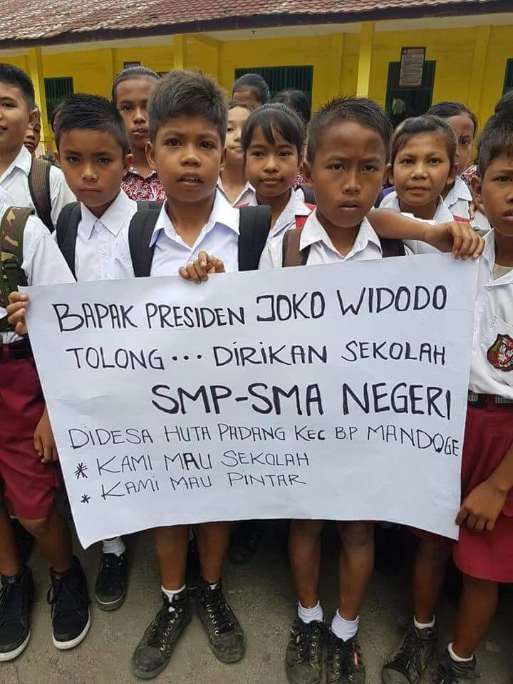 “Bapak Presiden Joko Widodo. Tolong… Dirikan Sekolah SMP-SMA NEGERI di Desa Huta Padang Kecamatan BP Mandoge