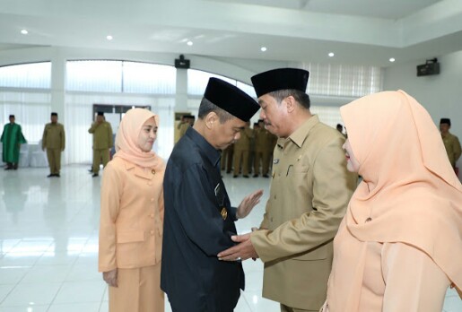 Bupati Asahan Taufan Gama Simatupang saat melantik Taufik ZA sebagai Sekda defenitif, Rabu (16/5). |