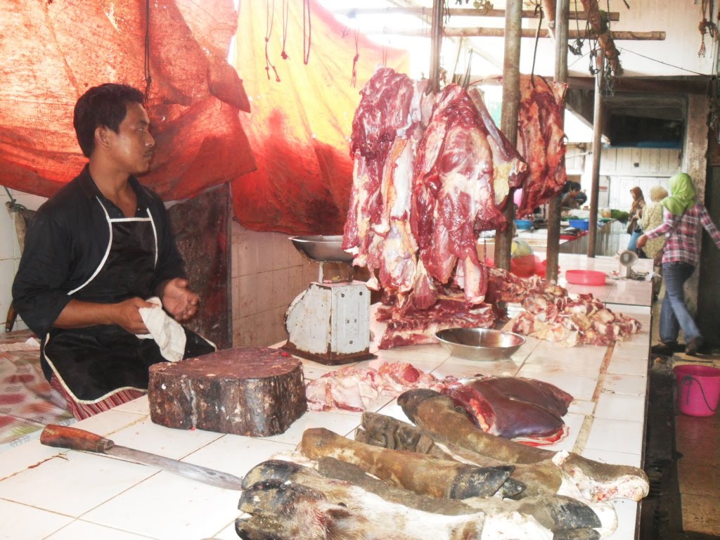 “Harga daging masih normal, Bang. Biasa-biasa aja nggak ada kenaikan,” kata Haji Udin, pedagang daging di Pasar Inpres Kisaran, Jumat (18/5).