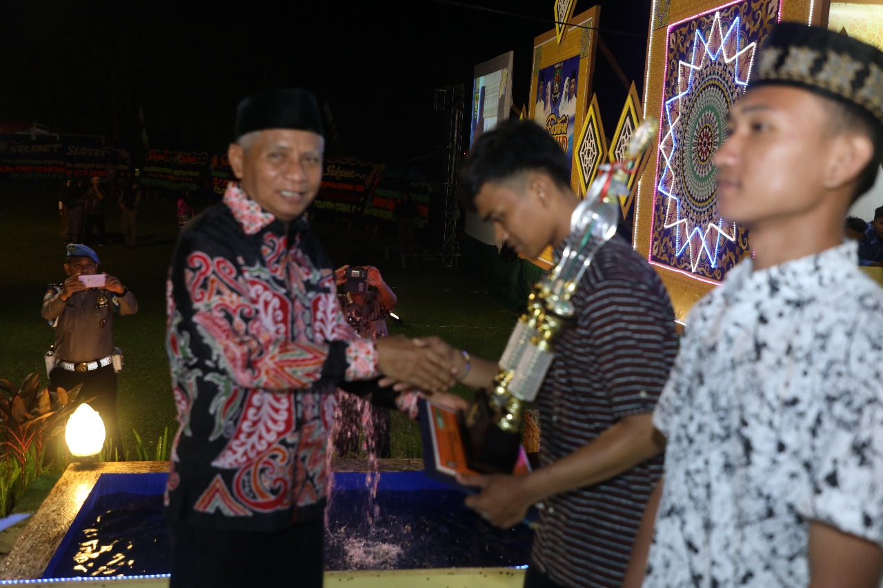 Wakil Bupati Asahan Surya BSc menyerahkan hadiah kepada pemenang lomba festival nasyid 2018. |
