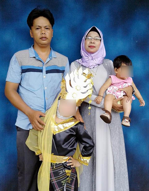 | Beni terduga teroris di Tanjungbalai yang ditembak tim densus 88 foto bersama istri dan dua anaknya. Ternyata menurut keluarga tim densus salah tangkap dan tembak orang. |