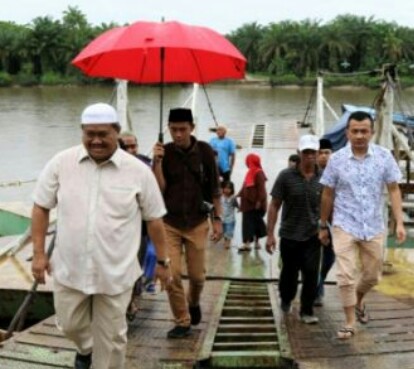Rombongan Bupati Labura Kharuddin Syah saat datang ke panton penyebrangan Kualuh Hilir. |