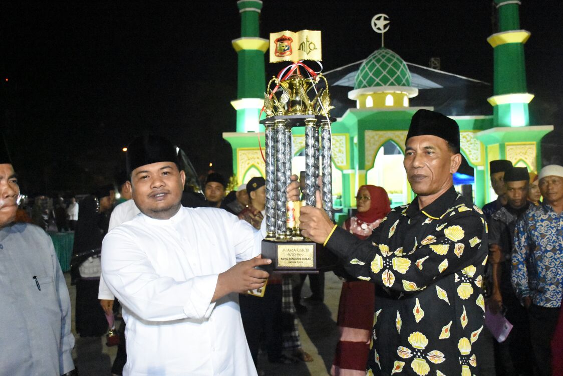 Walikota Tanjungbalai H M Syahrial menyerahkan pala bergilir kepada Juara Umum MTQ ke 50 yang diterima oleh Camat Teluk Nibung, Kota Tanjungbalai. |
