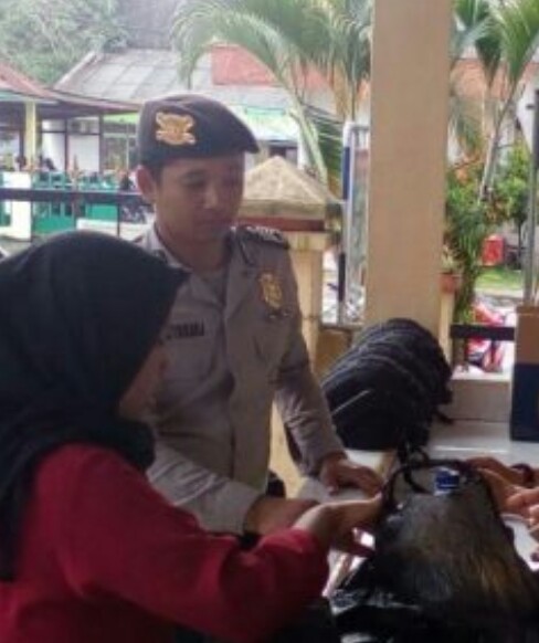 | Petugas memeriksa barang bawaan tamu di Polres Tanjungbalai. |