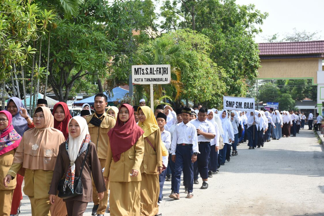 TASLABNEWS, TANJUNGBALAI – Ratusan peserta yang berasal dari berbagai elemen masyarakat termasuk siswa TPA, TK, SD, SMP dan SLTA se Kota Tanjungbalai meriahkan Pawai Taaruf menyambut Musabaqoh Tilawatil Quran (MTQ) ke-50.