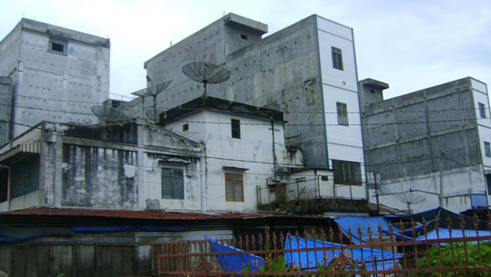 ruko yang dijadikan sarang walet yang masih ada burungnya, sementara sebagian