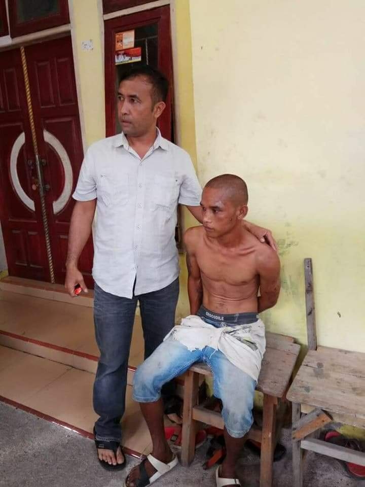Pohan (26) pasrah diboyong ke Markas Polres Kota Padangsidimpuan (Psp) dihajar