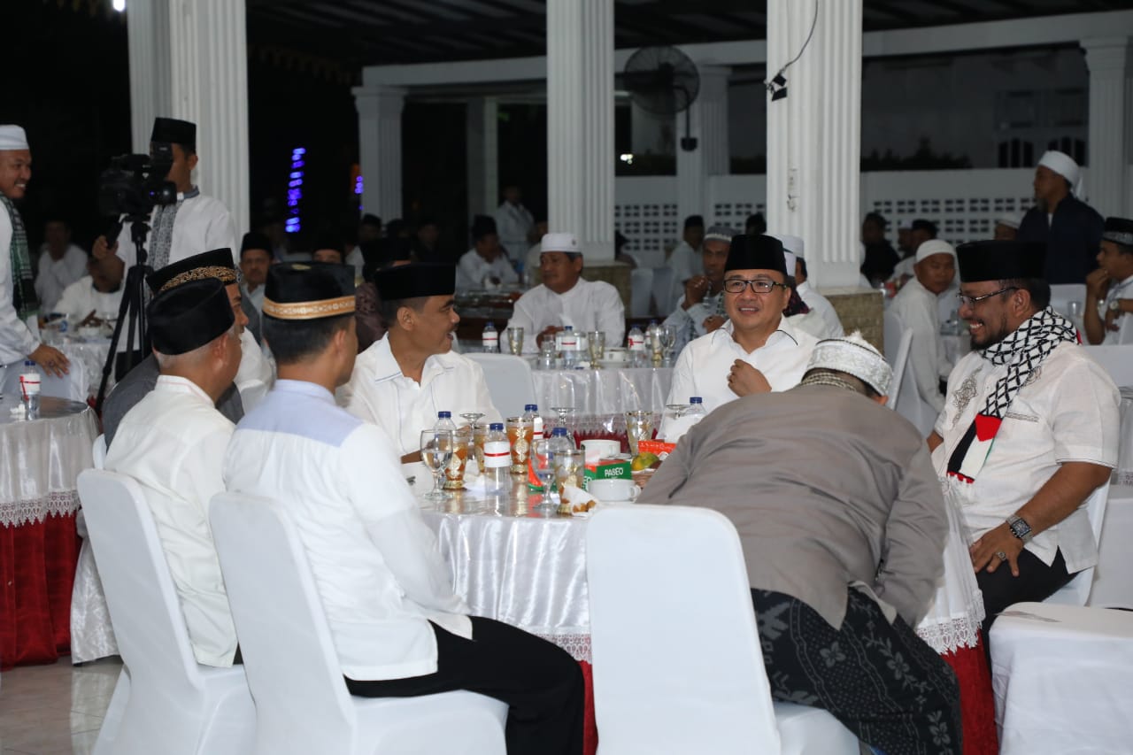 Bupati Asahan Taufan Gama Simatupang bersama para undungan di acara buka puasa bersama tim safari ramadhan di Rumah Dinas Bupati. |