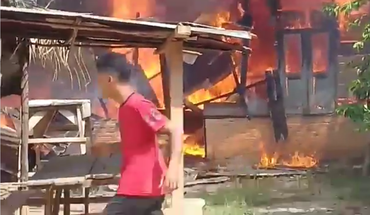 terbuat dari papan dan kayu bulat,” kata Amir, warga yang turut memadamkan api