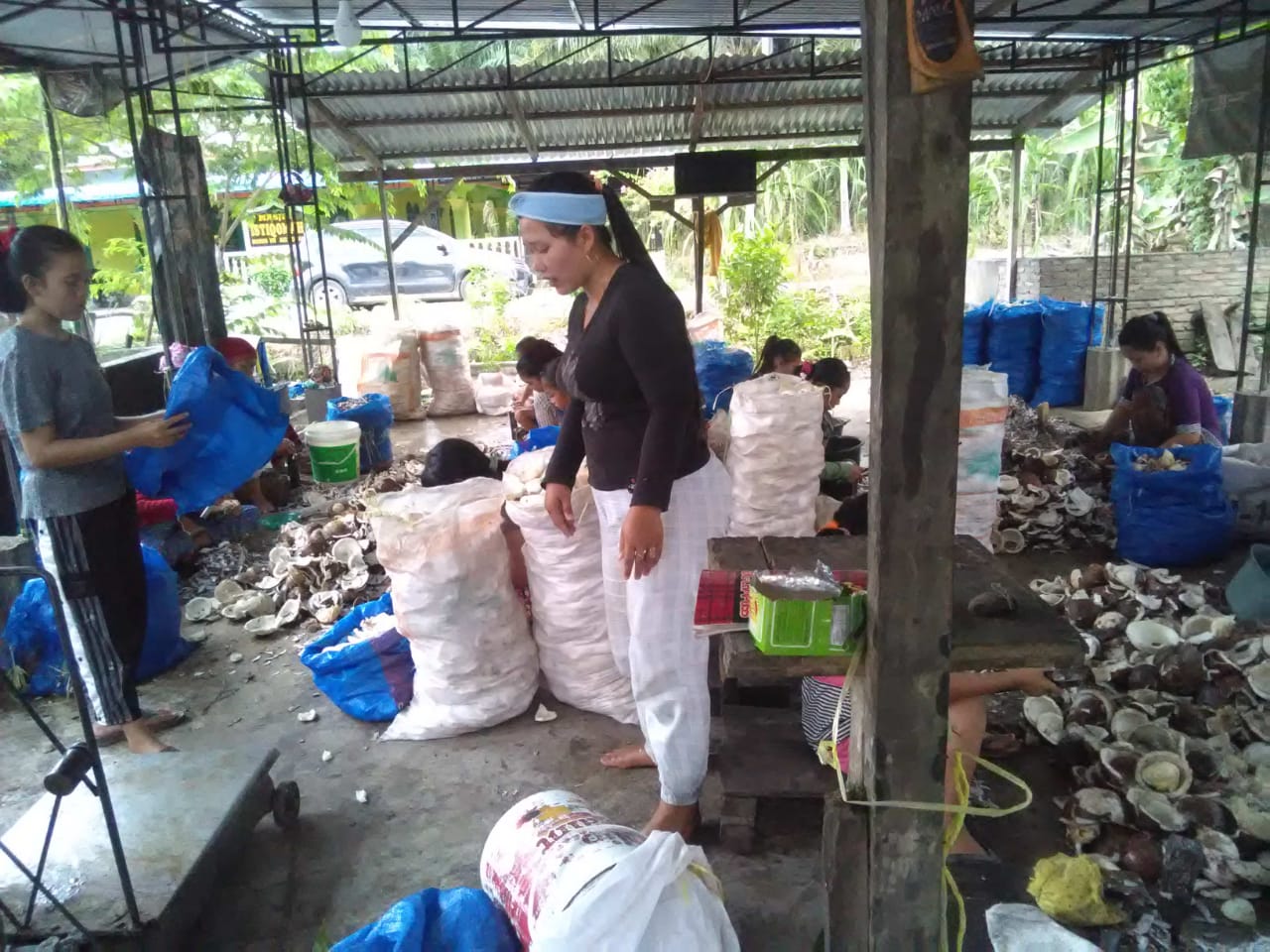 Kedua wanita yang ditemui di gudang pengoncek kelapa sayur