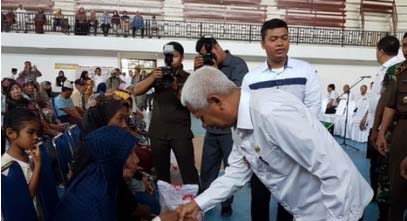 Penyerahan bantuan beras tersebut diserahkan oleh Wakil Bupati Asahan, H Surya Bsc secara simbolis yang digelar di gedung Olah Raga (GOR) Kisaran.