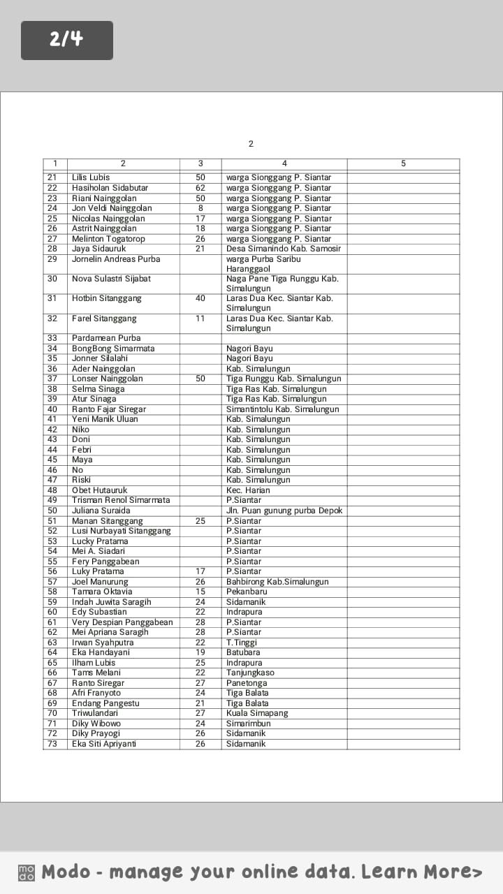 26 Astrit Nainggolan 18 warga Sionggang P. Siantar