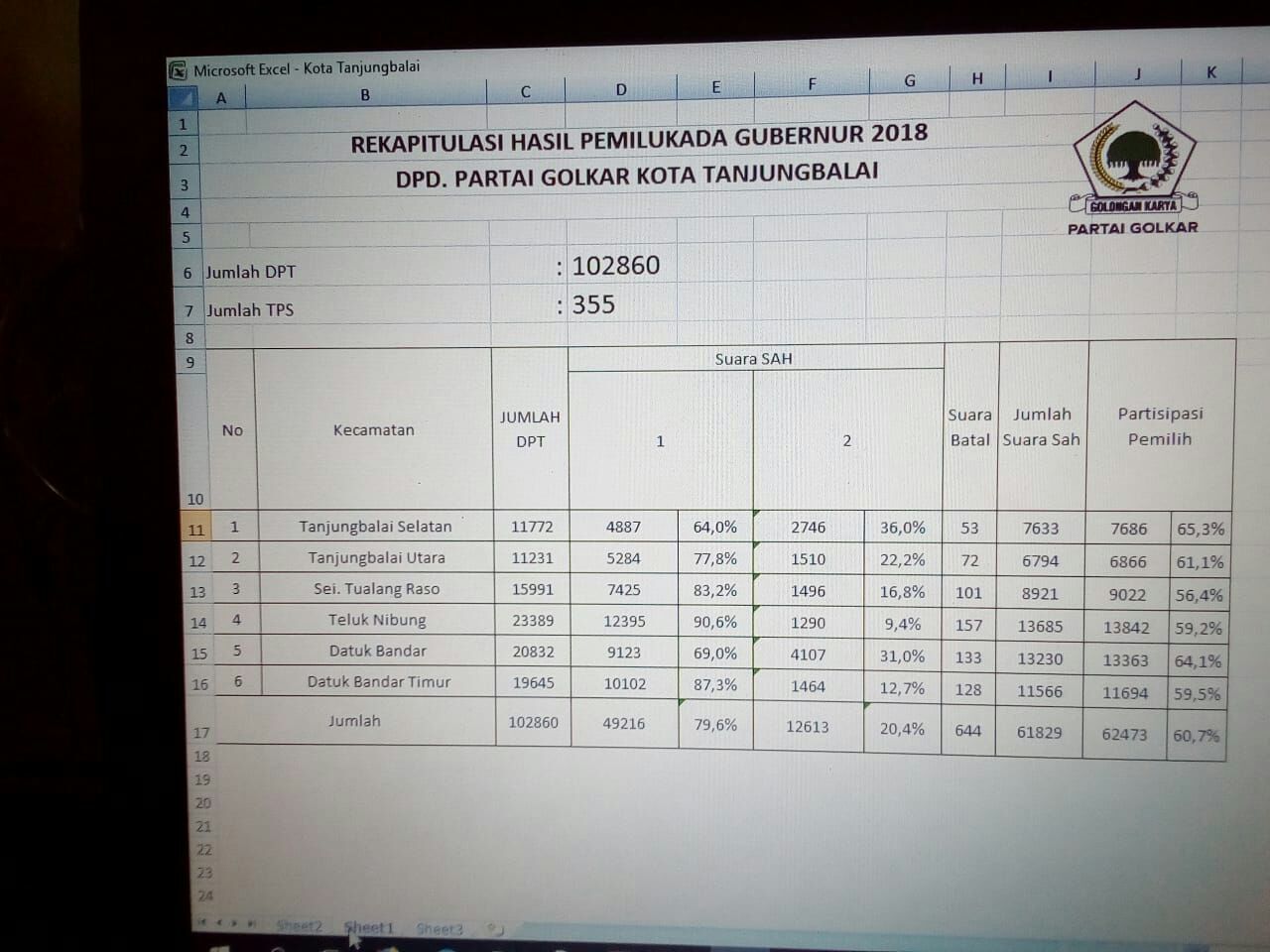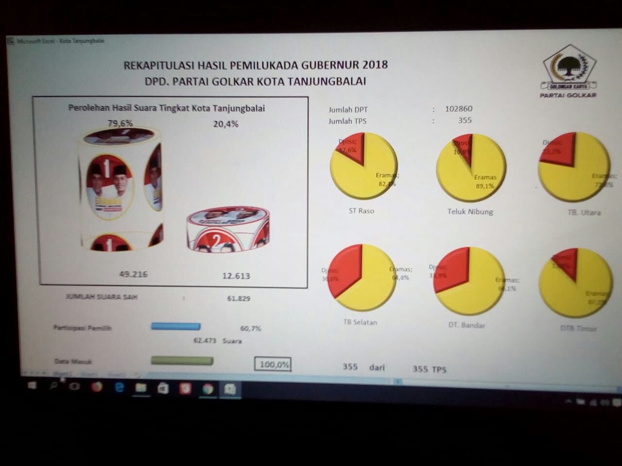 TASLABNEWS, TANJNGBALAI- Hasil penghitungan suara pilgubsu di Tanjungbalai pasangan Eramas meraih 72 Persen Suara. Sedangkan Djoss meraih 28 persen suara.