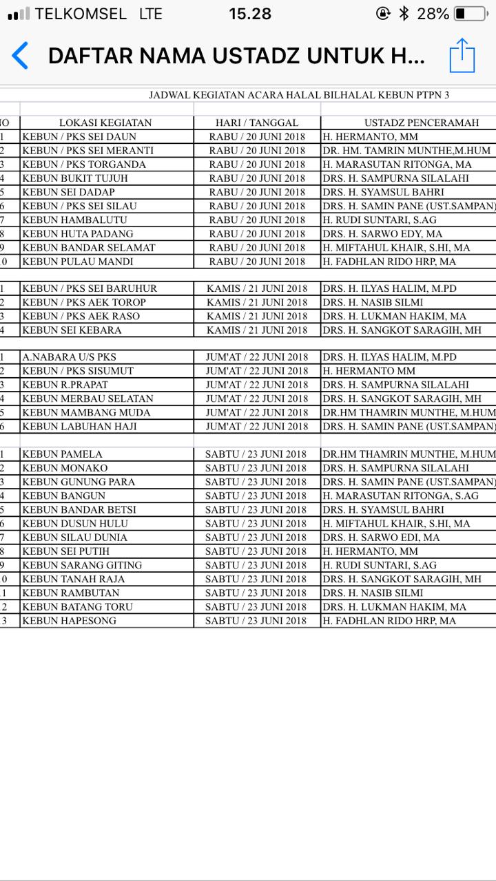 | Daftar nama ustad pendukung Calon Gubsu nomor urut 2 yang akan memberi ceramah di acara halal bi halal di perkebunan. |
