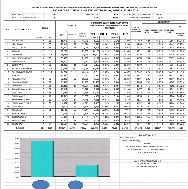 Grafik dan perolehan suara hitungsn cepat Pilgubsu di Asahan |