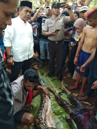 “Kita terus melakukan pencarian dibantu dengan aparat kepolisian. Sekira pukul 09.30 Wita warga menemukan seekor ular besar yang tidak bisa bergerak karena kekenyangan. Karena merasa curiga, warga menarik ular tersebut ke kampung dan saat di belah, dari perut ular tersebut ditemukan dengan kondisi tidak bernyawa” jelas salah seorang warga seraya menyebutkan korban langsung di antar kerumah duka. (syaf/int)