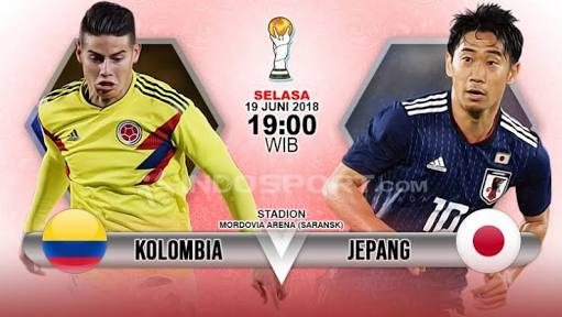 Laga Kolombia lawan Jepang ini akan disiarkan Trans TV sebagai pemegang hak siar Piala Dunia pada Selasa (19/6) pukul 19.00 WIB.