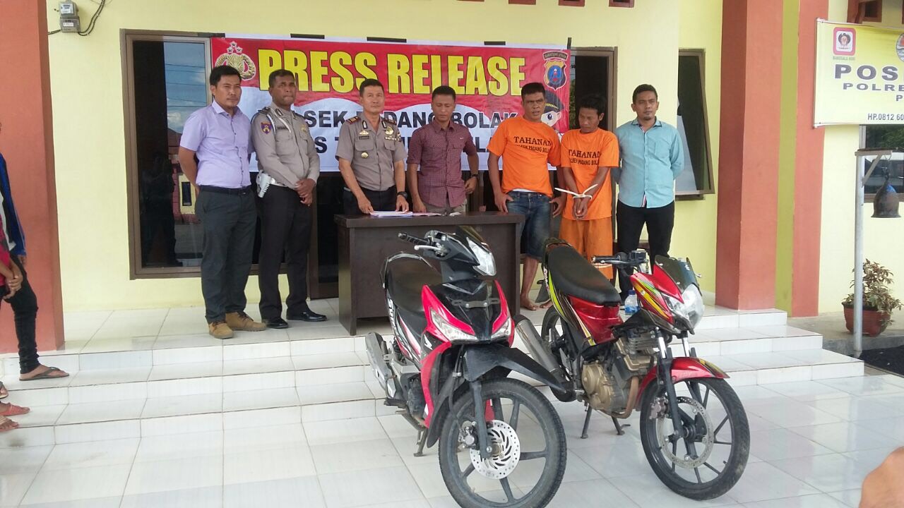 Polisi memaparkan hasil penangkapan terhadap dua tersangka pelaku curanmor di Paluta. |